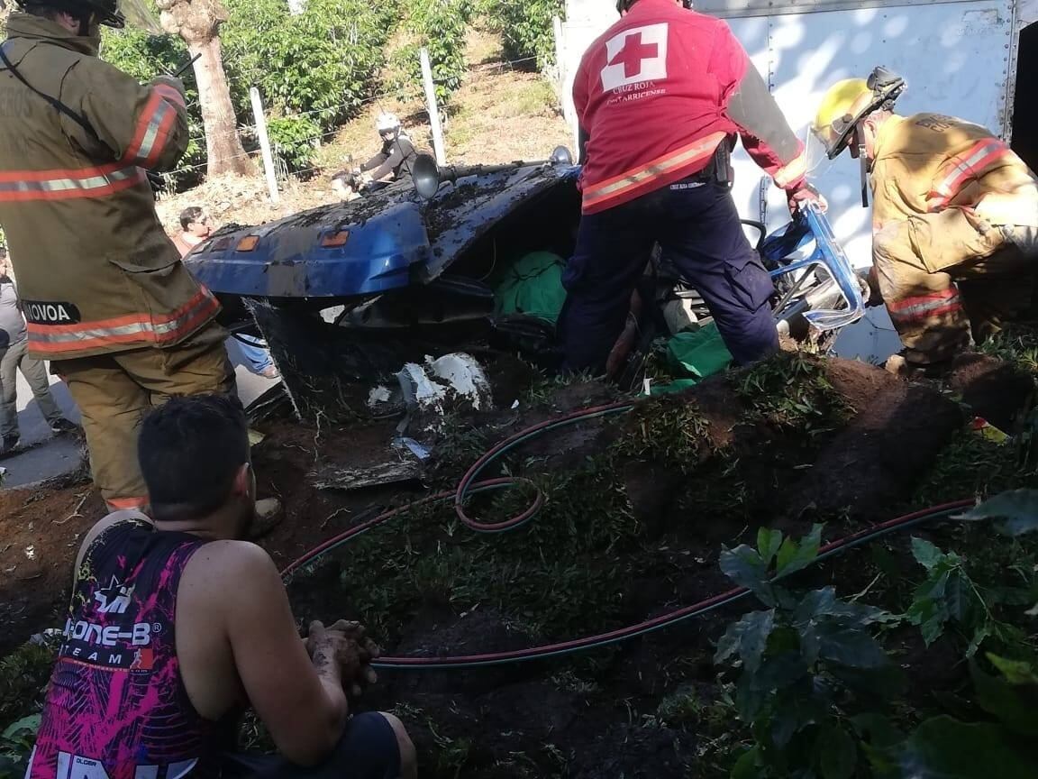 Mauricio Mendoza, coordinador de Operaciones de la Cruz Roja de Cartago, informó que ellos enviaron dos ambulancias para atender la situación y que los rescatistas ayudaron en la liberación de los afectados, quienes nunca perdieron la lucidez pese a los golpes que sufrieron.