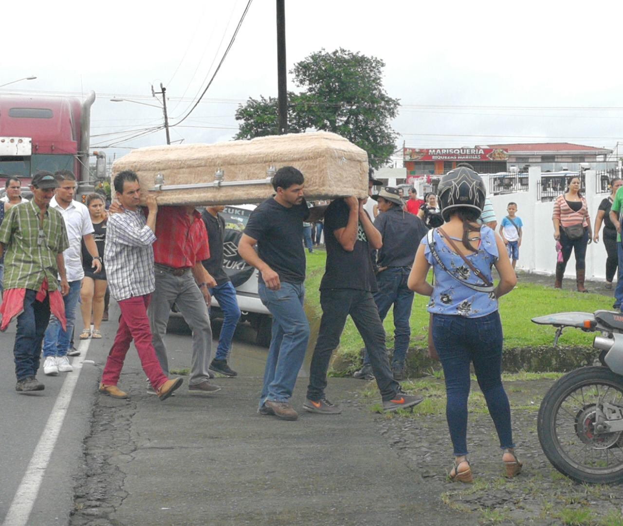Cuando el cuerpo de Bolaños llegó al cementerio de Guápiles, varios de sus amigos y familiares cargaron su ataúd hasta el nicho en el cual le dieron el último adiós.
