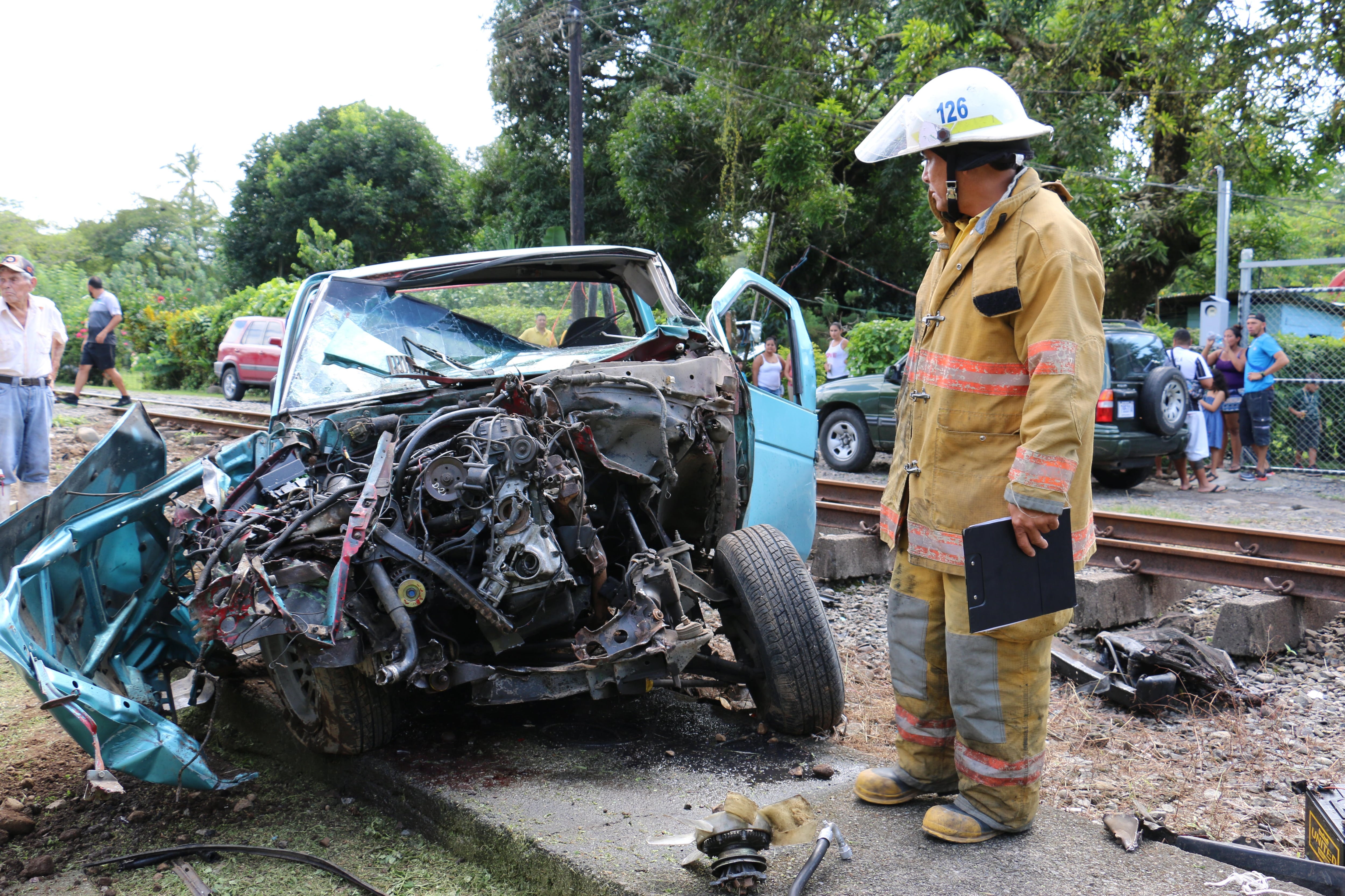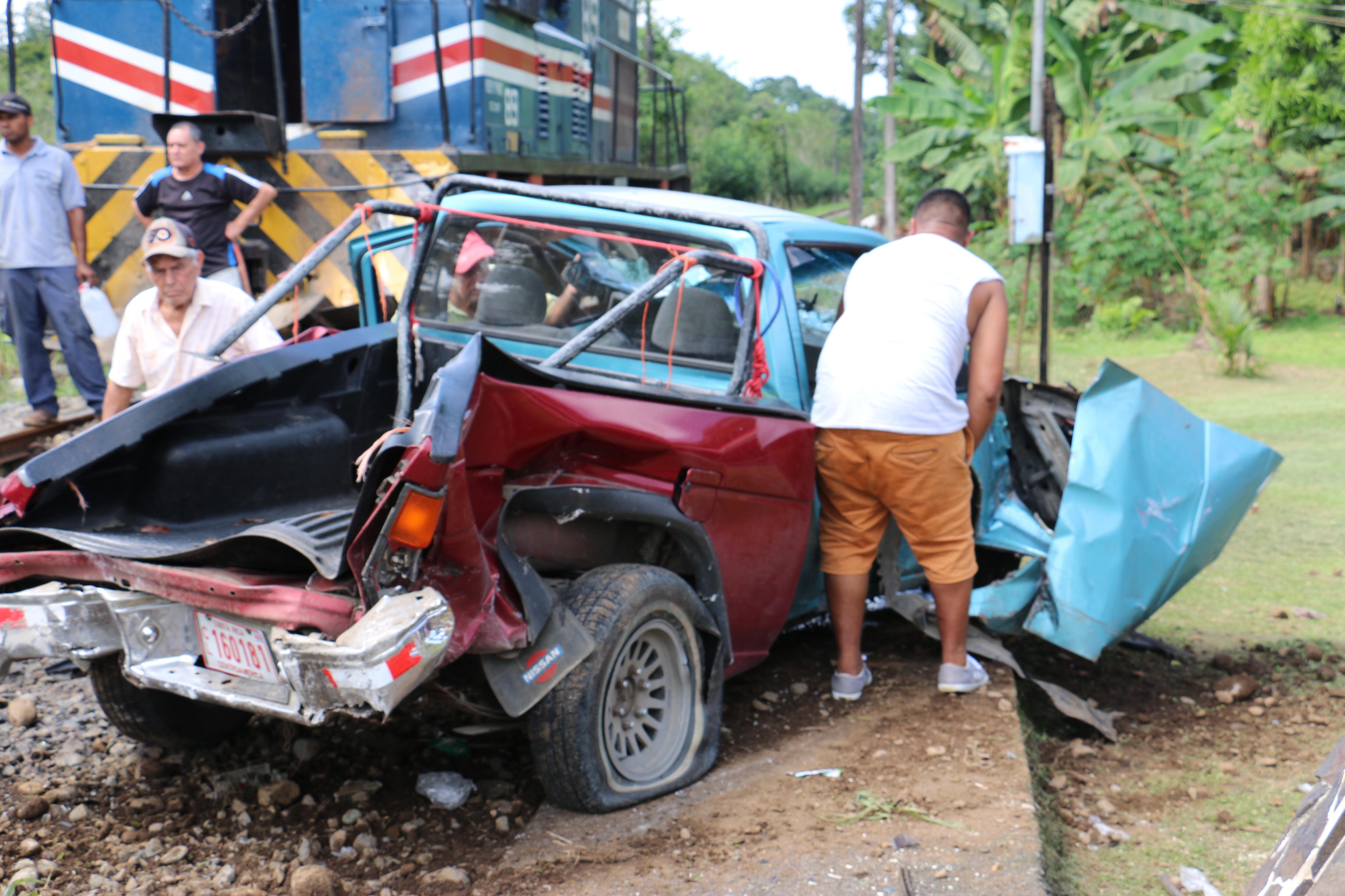 El tren chocó este lunes contra un pick up, en Guácimo de Limón, dejando como resultado a tres personas heridas.