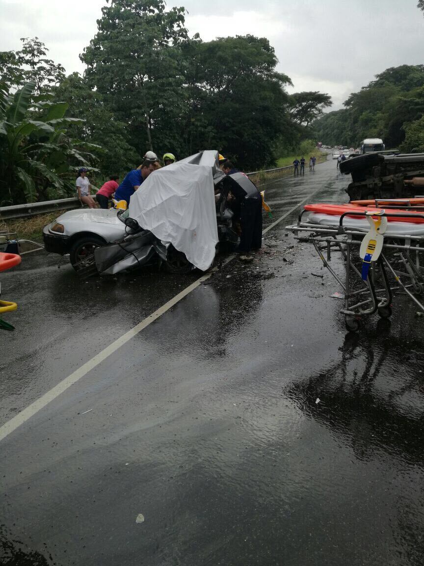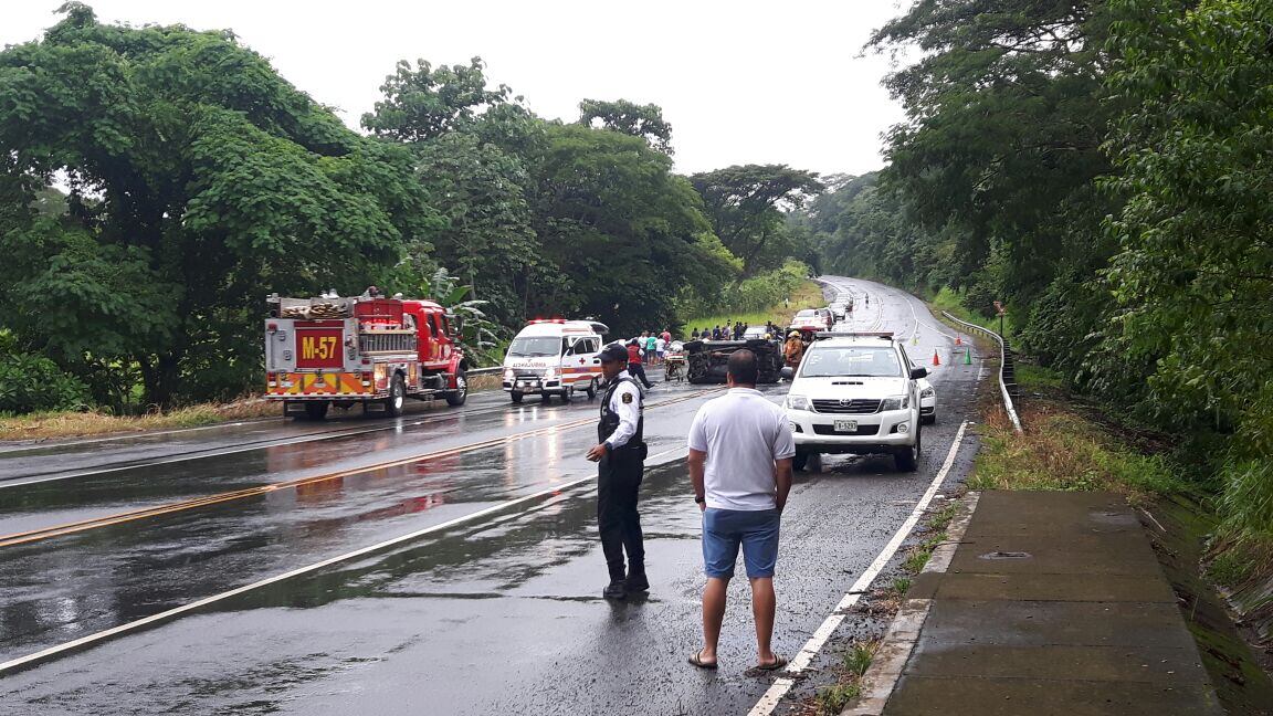 El aparatoso accidente se dio a eso de de las 3:20 p.m. de este domingo, sobre el kilómetro 56 de la Ruta 27, en el sector de Coyolar de Orotina, Alajuela, del peaje de Pozón 3 kilómetros hacia San José.