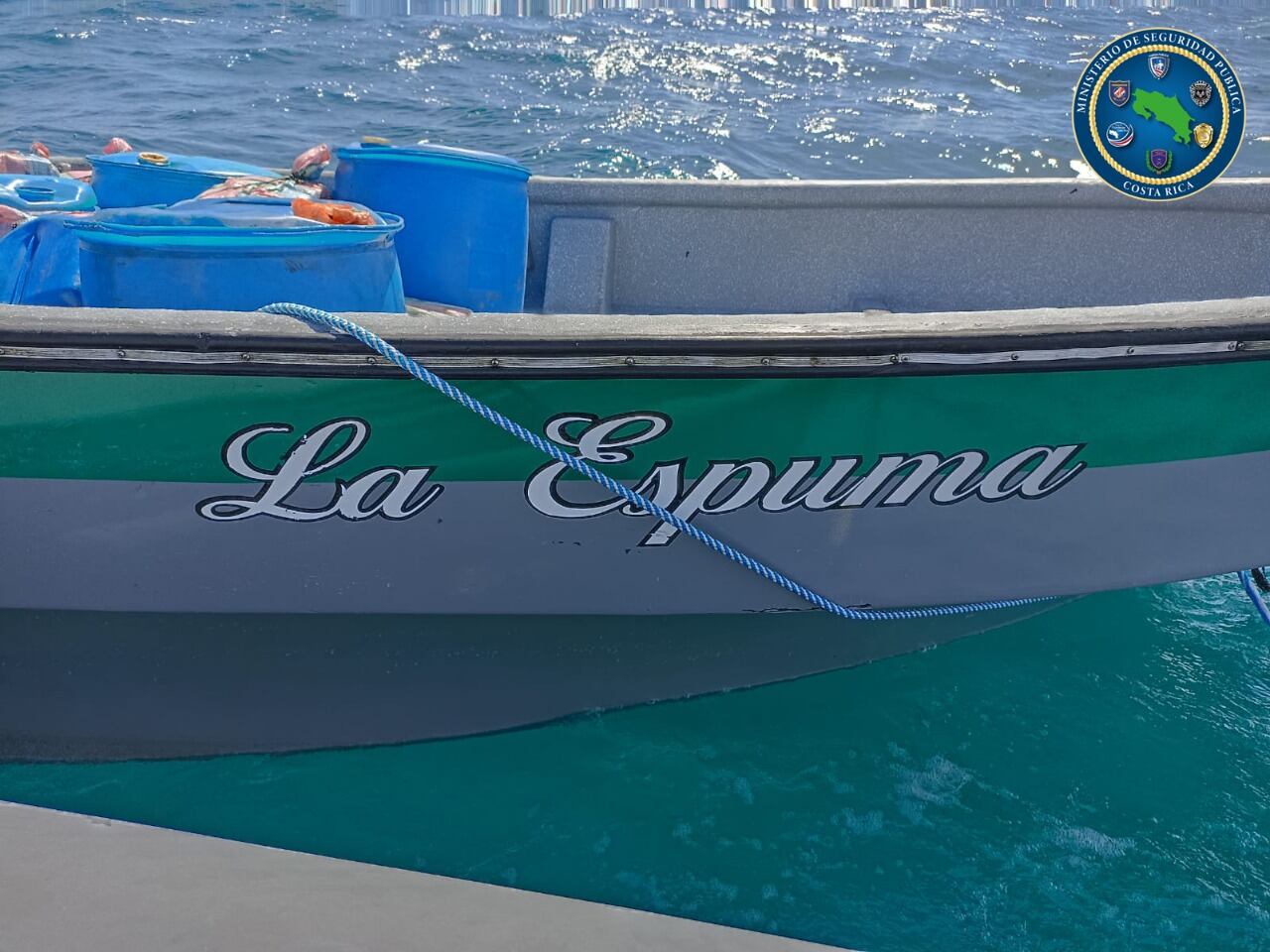 El primer barco detenido fue “La Espuma”, de 32 pies, verde con gris, sin bandera, de dos motores fuera de borda y la segunda embarcación de nombre “Yoja”, de 22 pies, azul con blanco, bandera costarricense y con un motor.