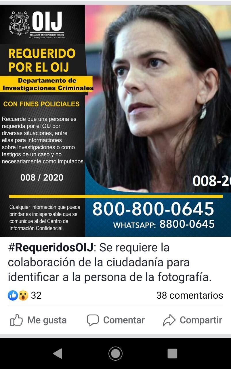 La foto de ella aparece en el sitio web del OIJ y en las otras plataformas judiciales.