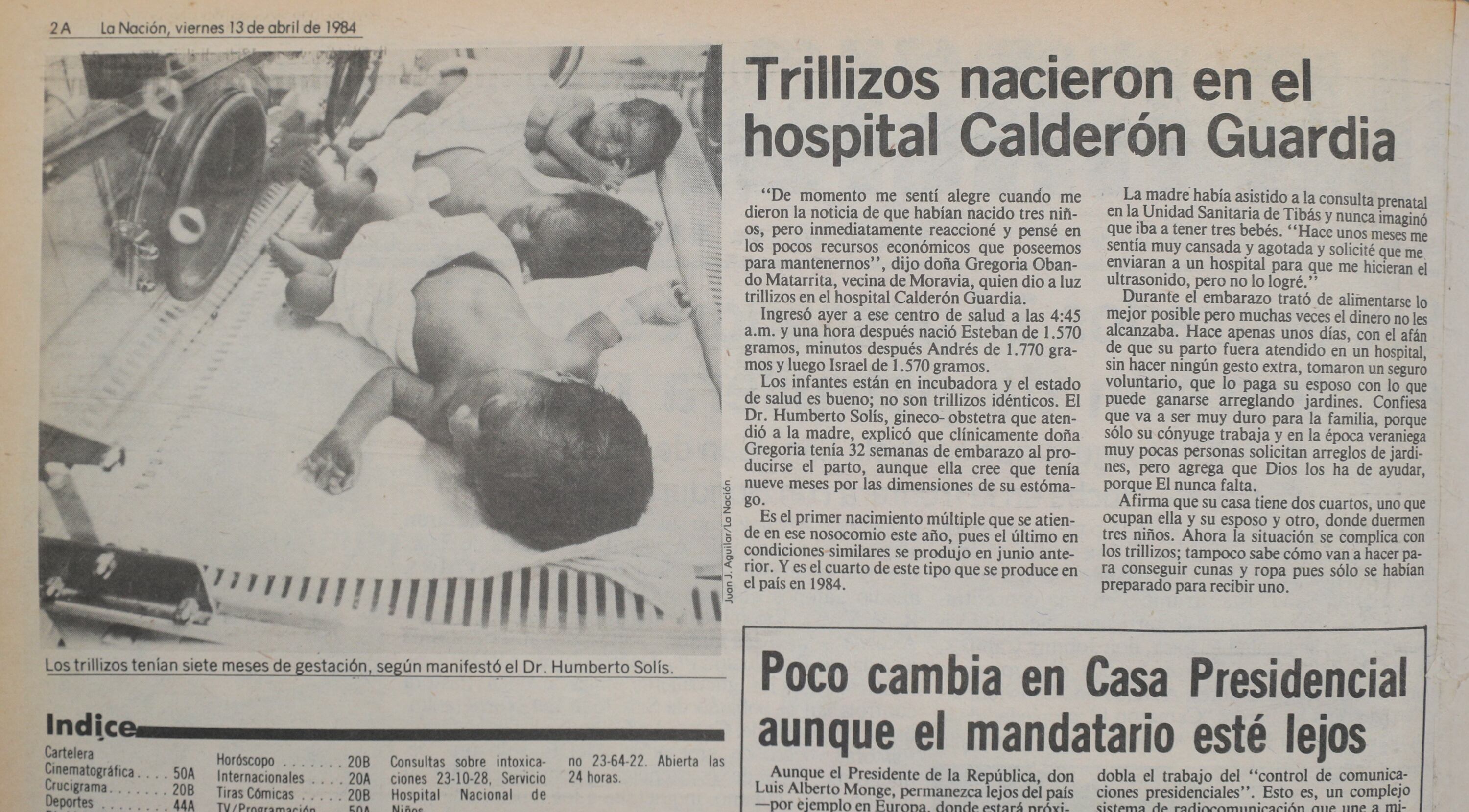 Doña Sonia Obando contó que sus hijos nacieron la mañana del jueves 12 de abril de 1984 en el hospital Calderón Guardia y su llegada al mundo fue una sorpresa, en especial para ella.