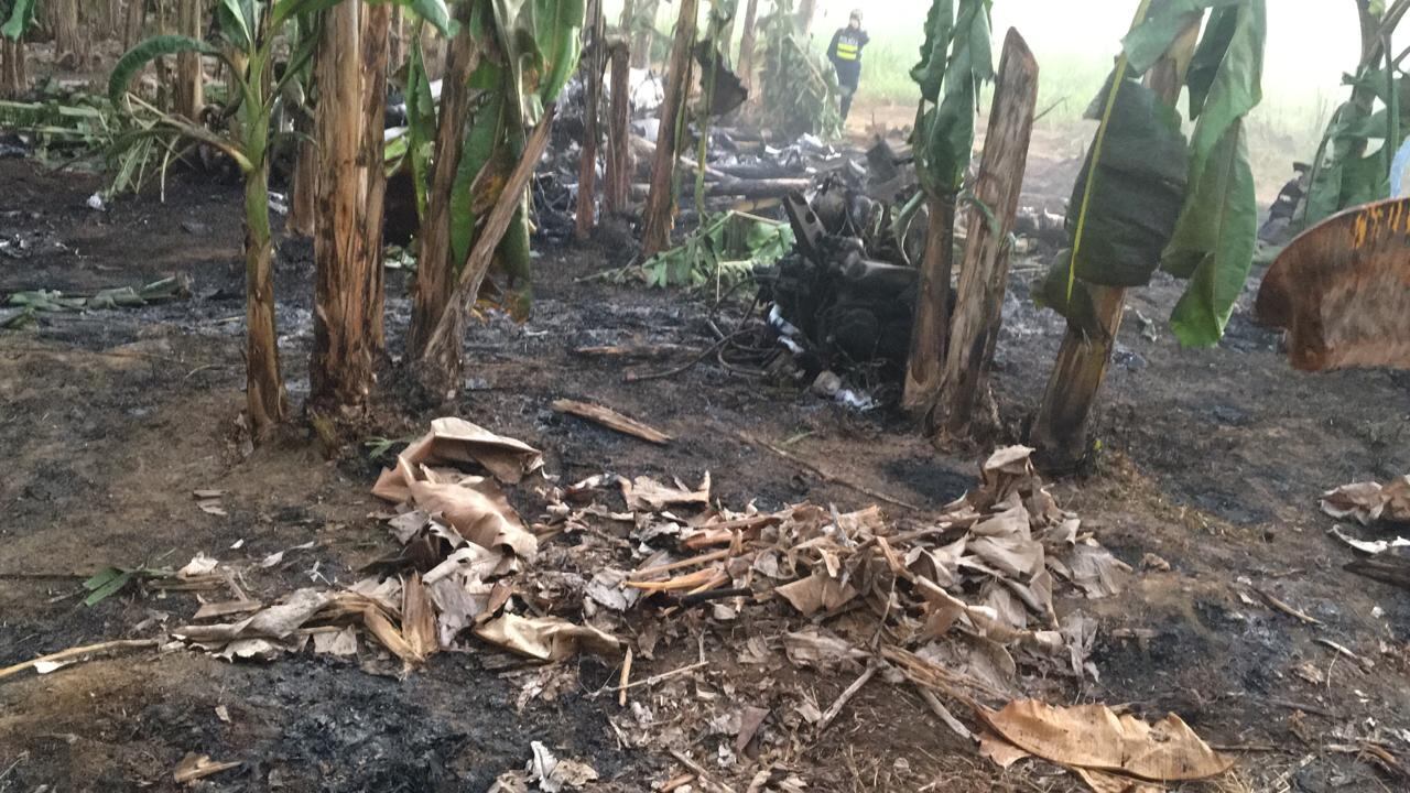 Con los primeros rayos del sol se vio que la aeronave quedó cerca de la una plantación de matas de banano. Al parecer, primero pegó contra las ramas de un árbol y luego quedó cerca de la plantación, así como de unas casas cercanas y una calle.