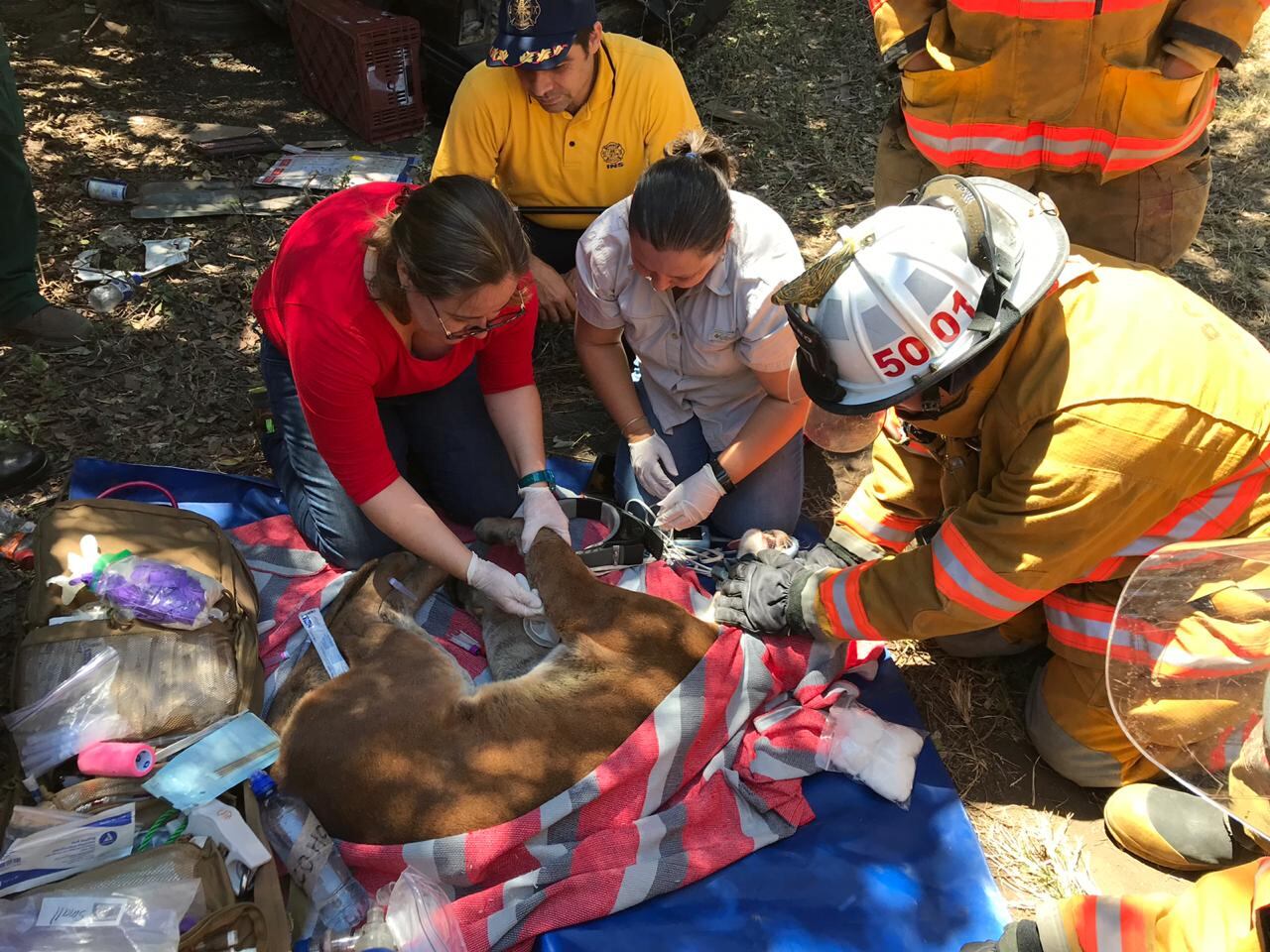 En esta situación participan bomberos de Santo Domingo y Tibás.