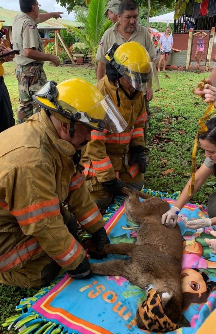 Una puma adulta que se paseaba por el patio de una casa en Alto de Capulín, en Garabito, Puntarenas, fue rescatada por los bomberos.