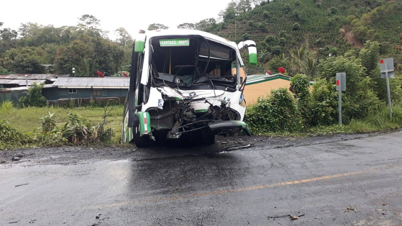“En apariencia, la vagoneta que viajaba de norte a sur (hacia Orosi) tuvo un desperfecto mecánico, no sé sabe si en la caja o si se quedó sin frenos, por esta situación irrespeta la luz del semáforo y choca al autobús que venía subiendo (hacia Cartago)”, explicó.