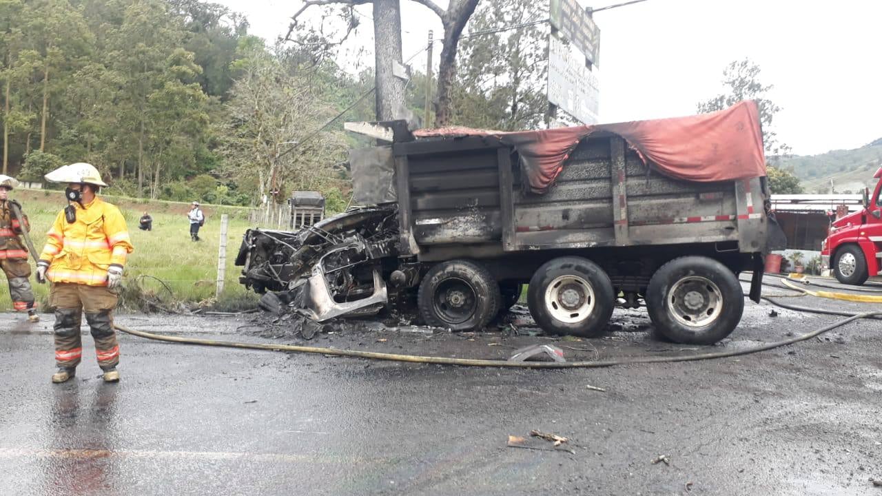 “Encontramos una vagoneta cargada con asfalto que tenía problemas de fuego en su totalidad, procedimos con el control del fuego y la valoración de los pacientes”, dijo el bombero Eduardo Solano.