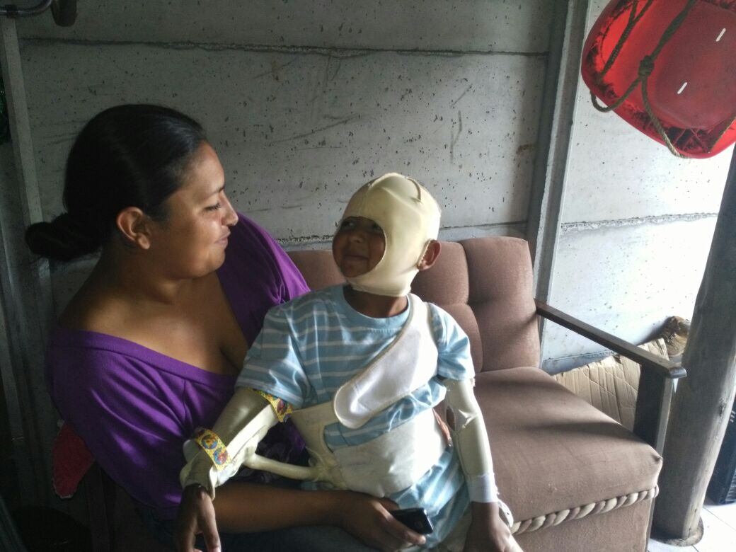 "Él lo ha tomado con más tranquilidad y de mejor manera. Ahorita utiliza licras para que las cicatrices no se abulten y evitar que les pegue el sol. Además, tiene una férula para que no roce el brazo con lo de la operación y debe usarlo hasta que sane bien la herida. El baño de él es normal, no le molesta ni le duele, tampoco a la hora de vestirlo”, comentó la mamá.