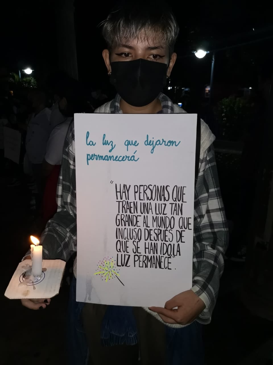 En la actividad colocaron arreglos de flores y candelas a la par de las fotos de las víctimas. Algunas personas llevaron carteles con leyendas en las que pedían por el descanso de los cinco asesinados.