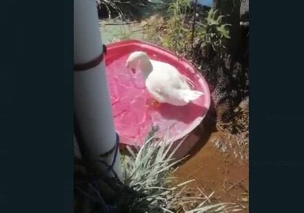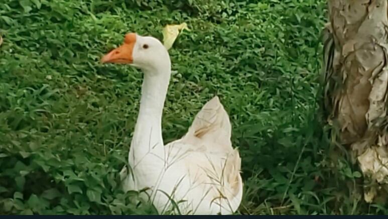 “Los movimientos que Monchito hace con la cabeza son porque de un ojo no ve nada y del otro creemos que prácticamente tampoco, uno de sus ojitos es celeste y el otro cafecito. Donde lo tenían, los otros gansos hasta le hacían bullying porque pegaba con todo”, añadió.