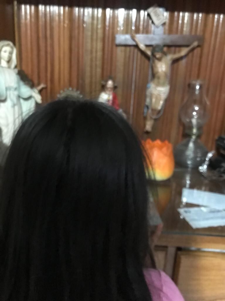 Victoria hasta ha estado rezando en la casa de su abuelita, quien la cuida mientras su mamita trabaja.