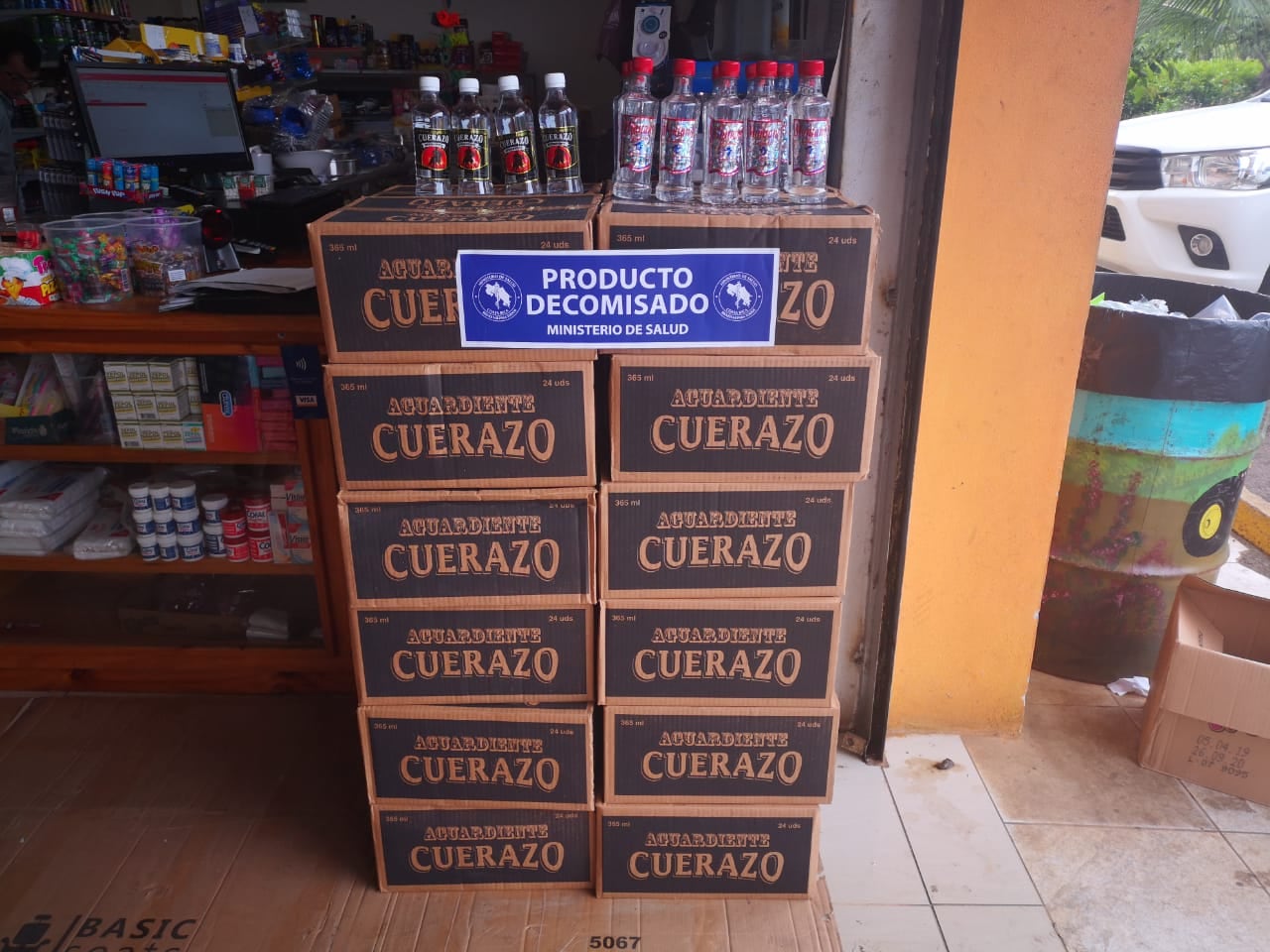 La Policía de Control Fiscal decomisó varias cajas de licor de la marca Montano este jueves en una distribuidora en Florencia de San Carlos.