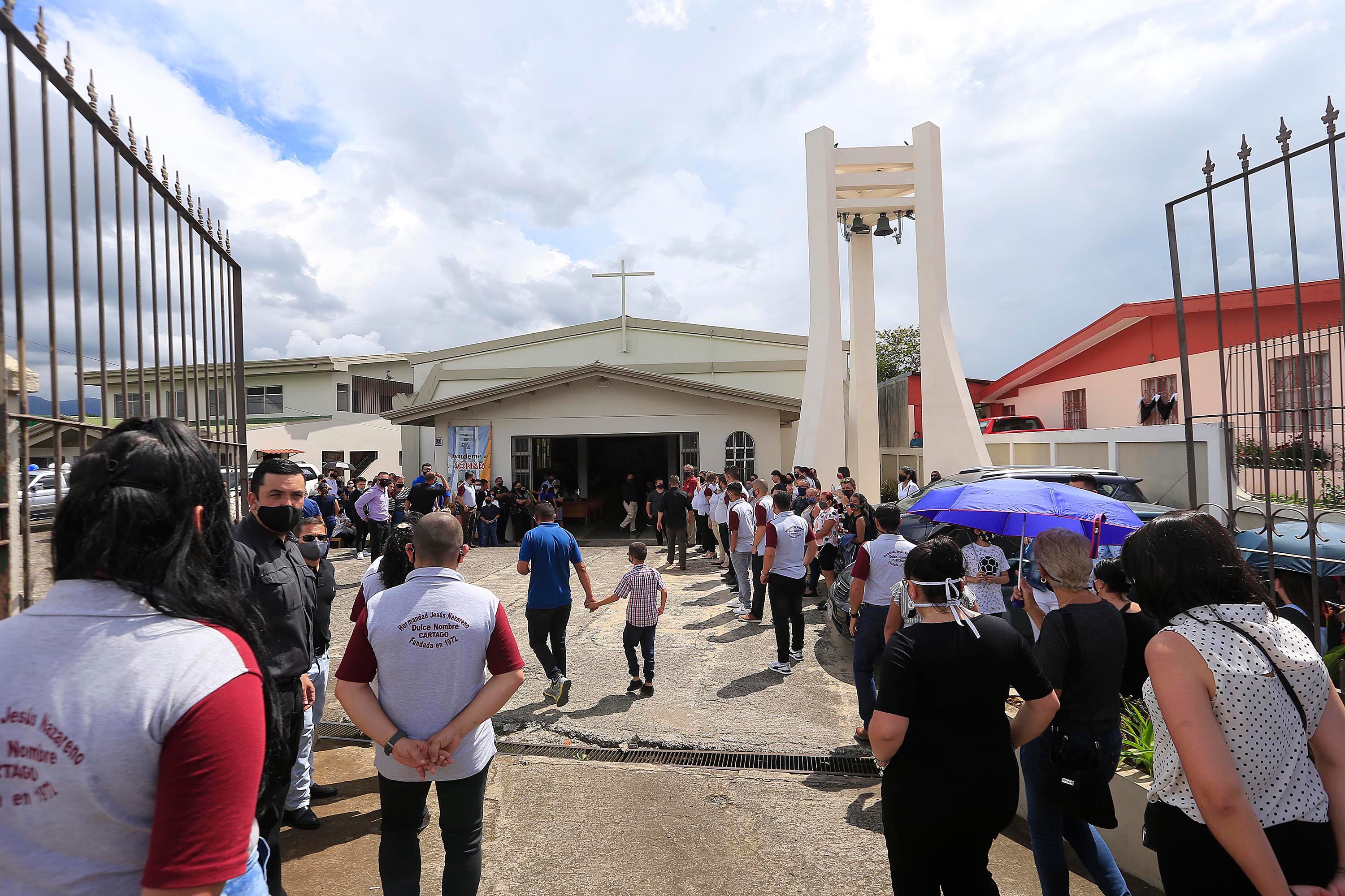 La iglesia se hizo pequeñita para recibir a la gran cantidad de personas que pese a la pandemia llegaron a despedir a sus seres queridos, eso sí, los vecinos acudieron con cubrebocas y alcohol en botellitas.