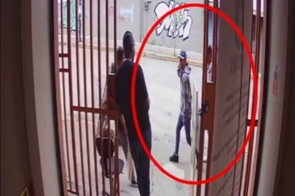 En las tomas se ve que el sospechoso pasa primero frente a la entrada del consultorio, después vuelve a aparecer en el video, pero en la acera del frente. Desde ahí disparó hacia la entrada del lugar, donde estaban las dos personas.