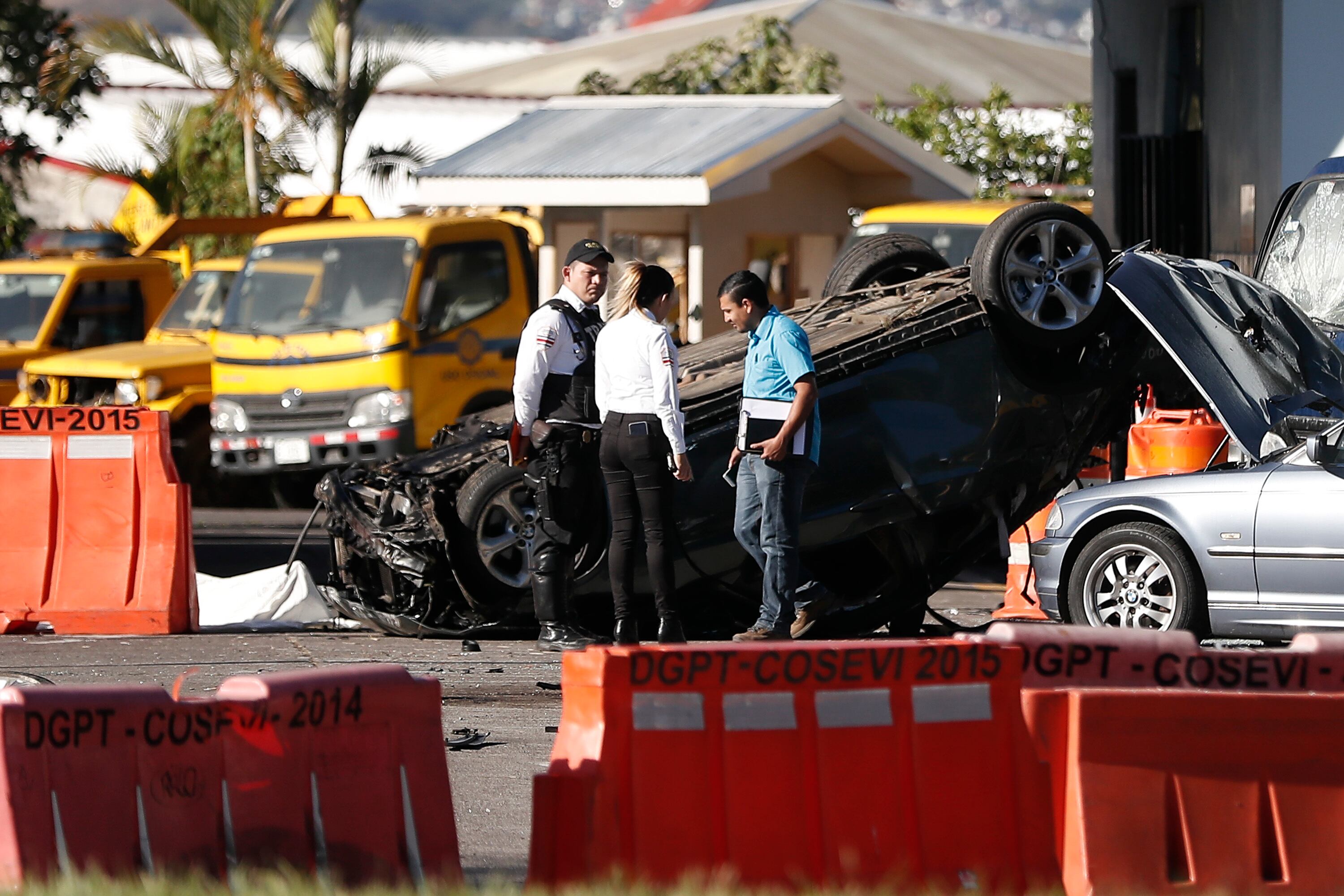 El conductor perdió el control de automóvil y pasó sobre la jardinera de la rotonda de las Garantías Sociales, para terminar elevándose y dando varias vueltas para quedar en las inmediaciones del plantel del Ministerio de Obras Públicas y Trasportes (MOPT).