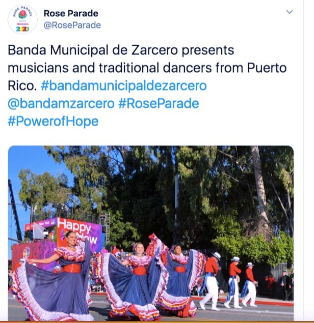 Lamentablemente, en la Twitter del Rose Parade se la pelaron feo, ya que presentaron a la agrupación tica como originaria de Puerto Rico.