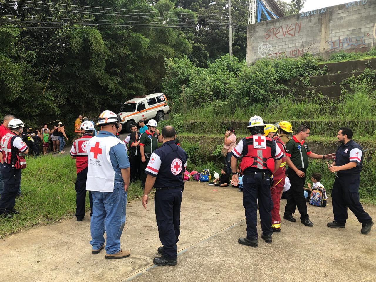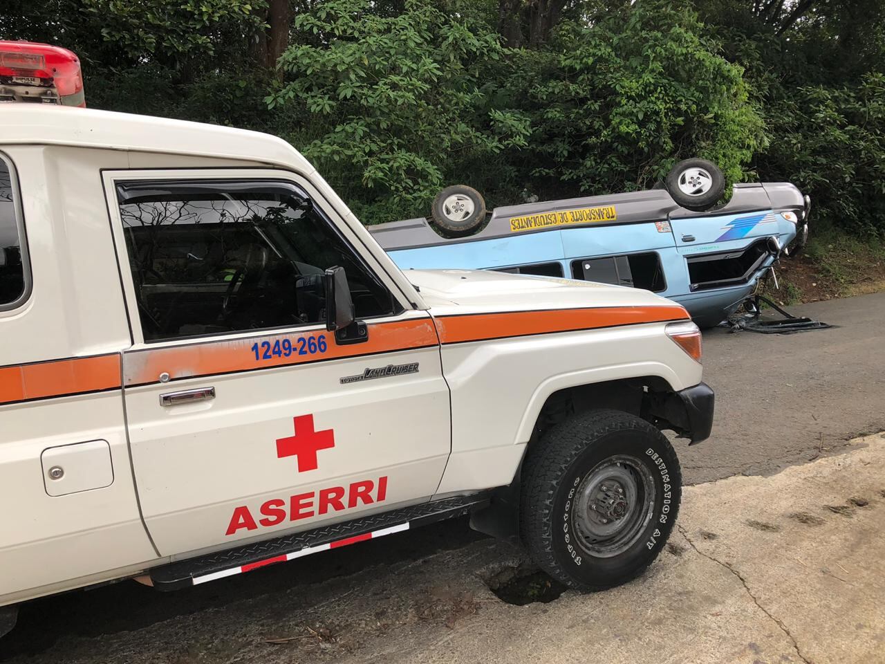 “Se atiende el vuelco de una buseta de estudiantes, los niños fueron auxiliados en primera instancia por los vecinos, de los once solo una niña tiene un trauma (golpe) en una manita por lo que fue trasladada a la Clínica Marcial Fallas, pero todos están bien, los papás de los niños se presentaron en el sitio para recogerlos”, dijo el paramédico Paulo Monge.