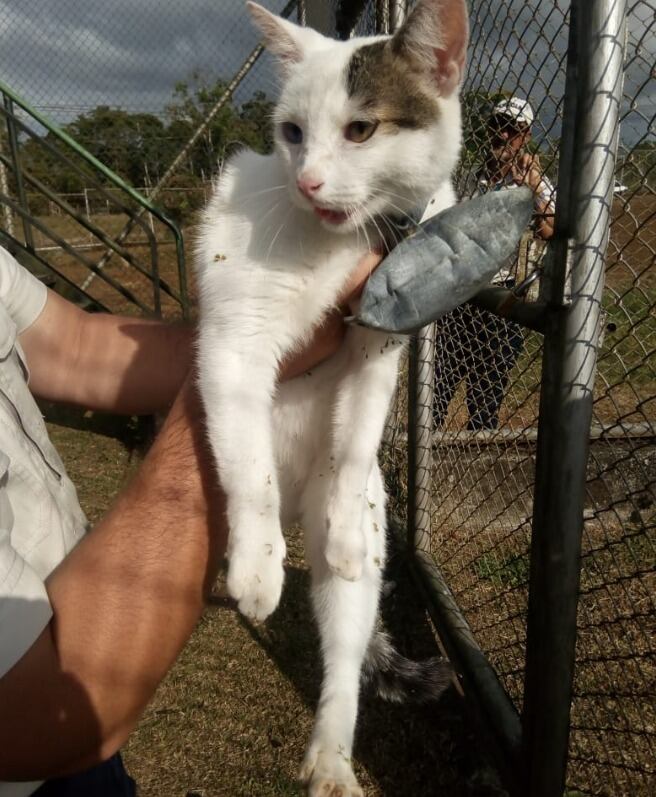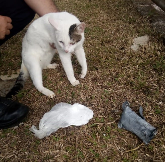 “Dentro de las labores de vigilancia ellos observan a un gato que portaba como un estuchito en el cuello, al capturarlo se dan cuenta que lo que lleva es una sustancia blanca que aún no se ha determinado qué es”, detalló.