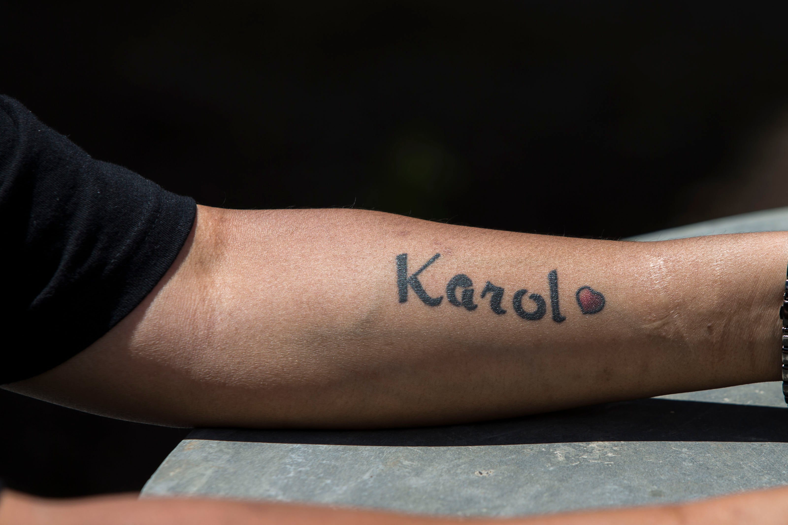 “Desde que teníamos 16 años nosotras nos veíamos, pero por cosas de la vida tuvimos que separarnos. Luego ella se casó, pero aún así a veces no veíamos y era tan lindo cuando nos encontrábamos. Cuando estábamos en lo más y mejor yo me tatué el nombre de ella en el brazo izquierdo y ella el mío en el brazo derecho”, cuenta señalando el nombre de Karol.