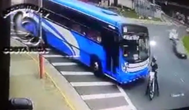 En el video, publicado por Accidentes de Costa Rica, se ve cuando el motociclista, quien viajaba por el carril izquierdo, se topa con un bus que imprudentemente se le mete cuando el hombre de la moto se pasó al carril derecho. Debido a eso los hombres discuten.