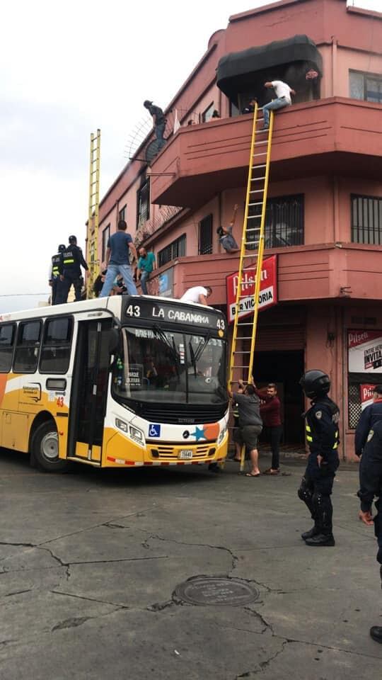 Con la ayuda de una escalera dos valientes hombres y los oficiales de la Fuerza Pública se subieron y sacaron a una mujer y sus dos hijos pequeños antes de que llegaran los bomberos.