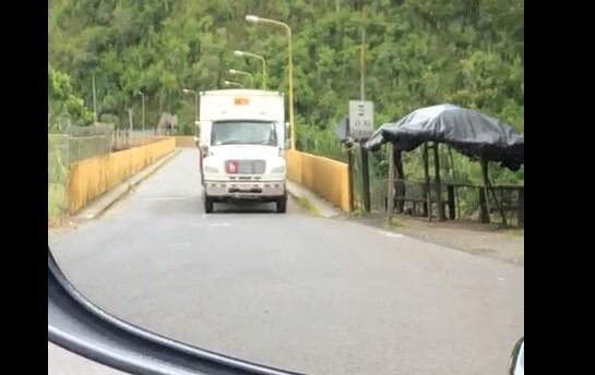 Un chofer grabó un video en el que se observa cómo un camión pasa por el puente aledaño a la represa de Cachí, en Paraíso de Cartago, donde el paso está restringido para vehículos pesados y lo hizo mientras un oficial de Tránsito vigilaba la zona.