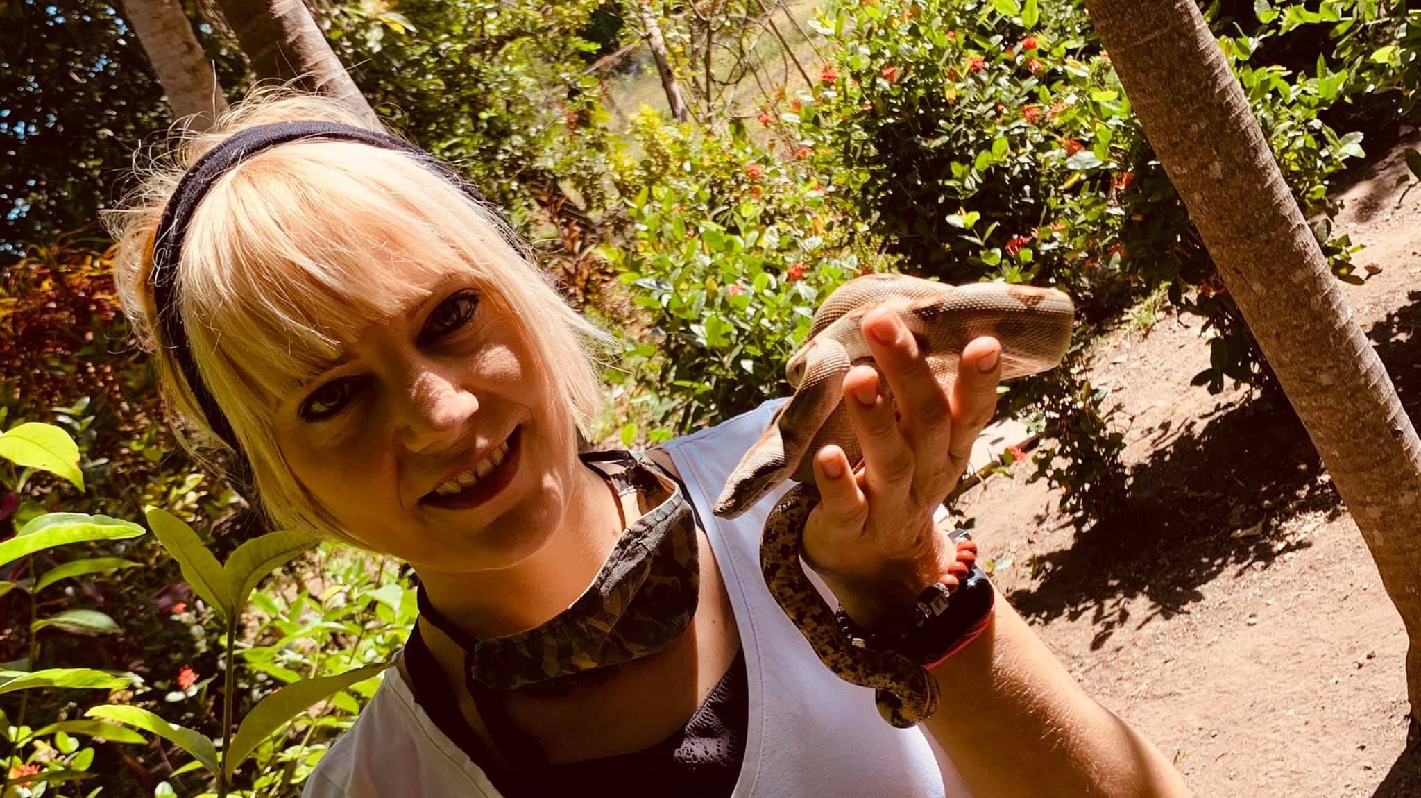Ella se dedica en su país a rescatar serpientes y otros animales y tiene videos grabados en Tailandia al lado de Frank Cuesta, el herpetólogo más famoso del mundo que tiene el programa de cable “Wild Frank”.