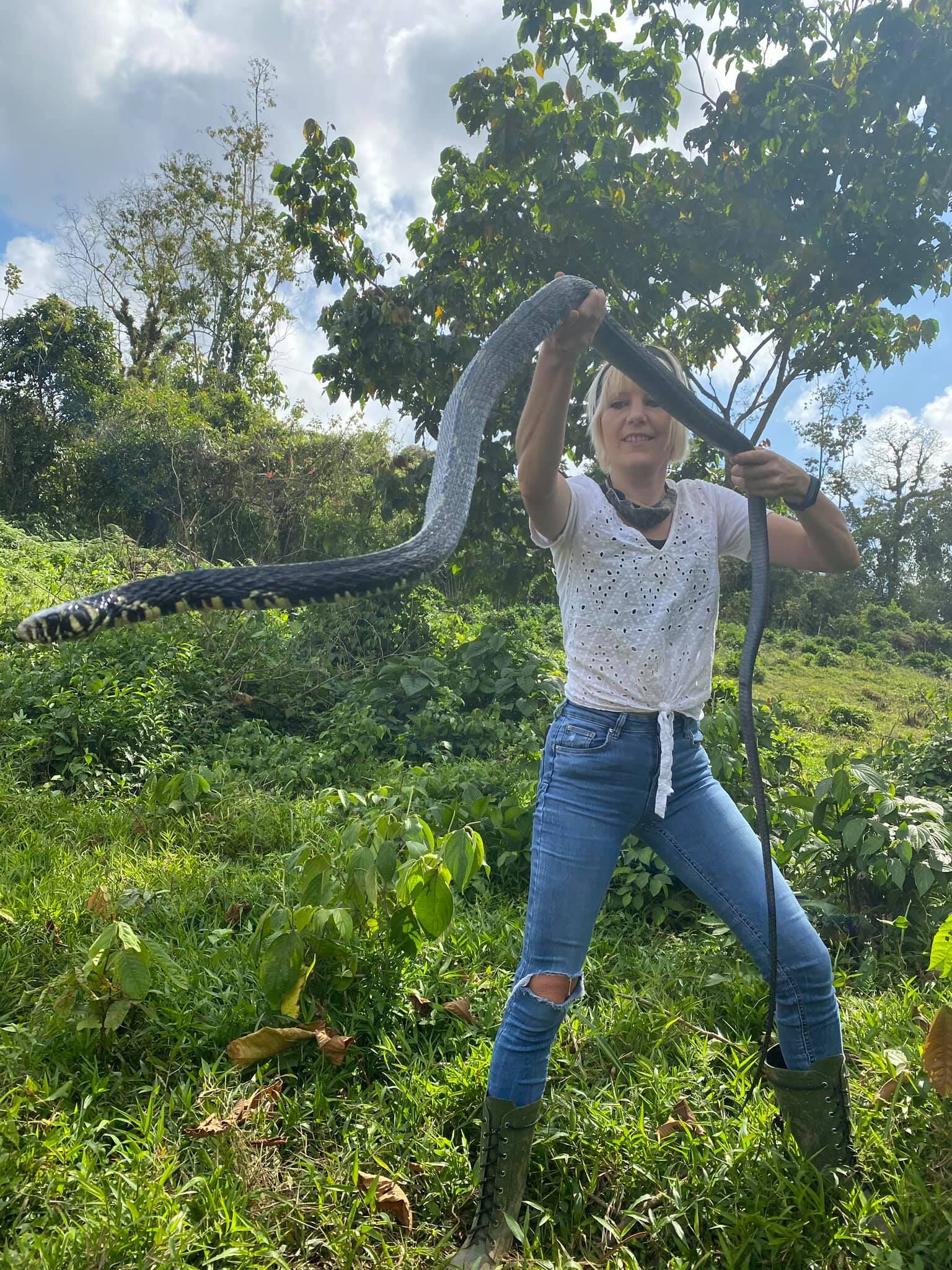 Durante su visita reciente, Deborah también conoció a Roberto Poirier, quien es famoso en Turrúcares de Alajuela porque no les da tregua a las “sincejas” y las captura cuando alguien encuentra una cerca (o dentro) de una casa.