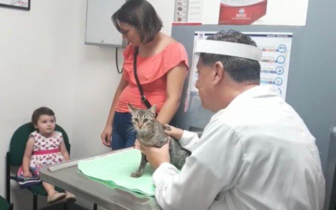 Sus dueñas, una mujer y su hija pequeña, fueron a recogerlo al centro médico y le contaron a los especialistas que la felina, de nombre 'Mía’ se les perdió el viernes 1° de mayo en la mañana, y fue hasta ese día en la noche que unos vecinos les contaron que los bomberos habían llevado el animalito en condición delicada al centro médico veterinario.