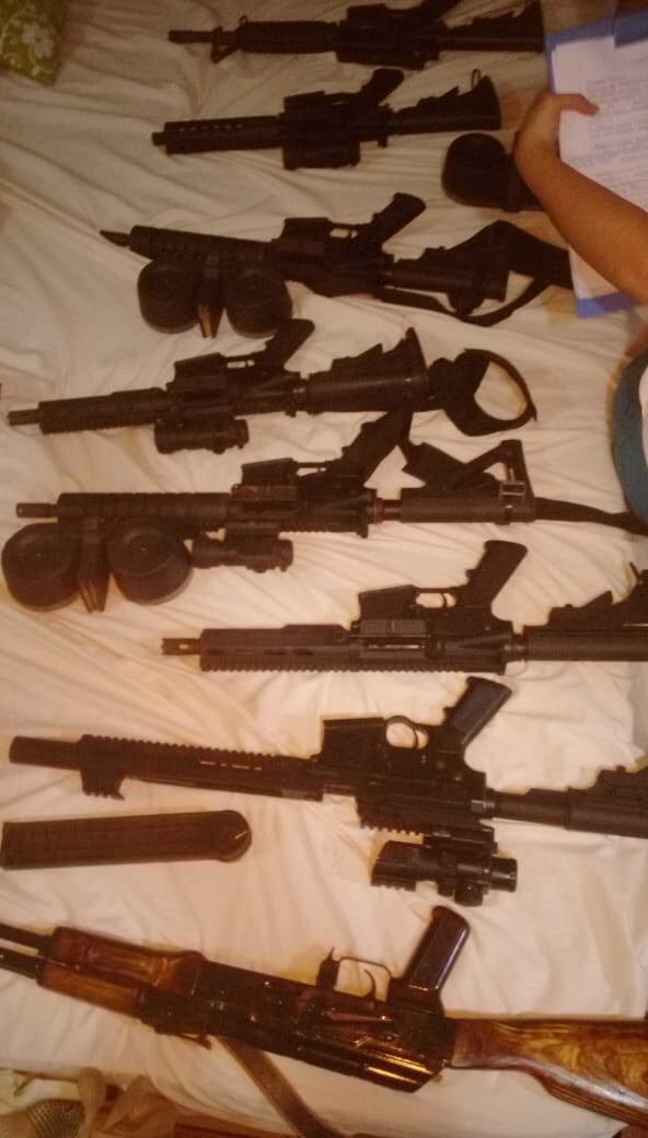 Según detalló este viernes Wálter Espinoza, director del Organismo de Investigación Judicial (OIJ), los agentes judiciales encontraron en el lugar once fusiles de AK47, Galil, y otro conocido como matapolicías (usualmente se refiere a los rifles P90 que son de calibre 57). También encontraron dos pistolas y dos silenciadores.