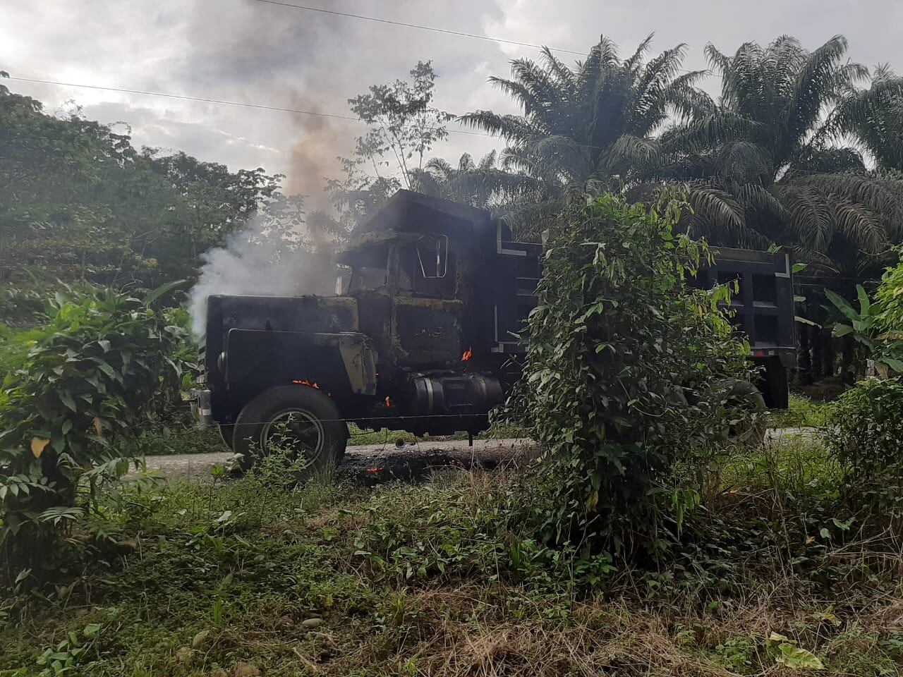 La vagoneta usada por los sospechosos fue encontrada quemándose en Roblito, exactamente 1,3 kilómetros al sur de la escuela de Guayacán.