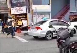 En las imágenes se ve que Gutiérrez se baja de la moto y apunta con un arma al otro chofer, que también baja del carro, discuten y forcejean; ambos cayeron al suelo y terceras personas intervinieron y desarmaron a Gutiérrez. En determinado momento el arma se disparó, pero nadie salió herido.