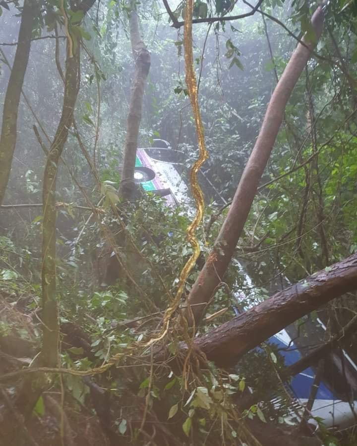El bus era de un piso y llevaba entre 50 y 60 personas, este fue lanzado por un guindo de aproximadamente 100 metros, por lo que quedó totalmente destruido.