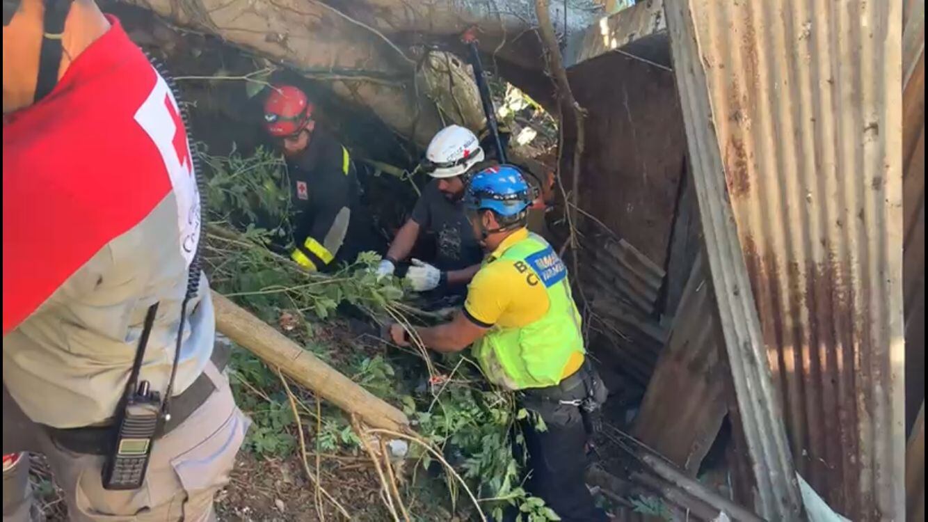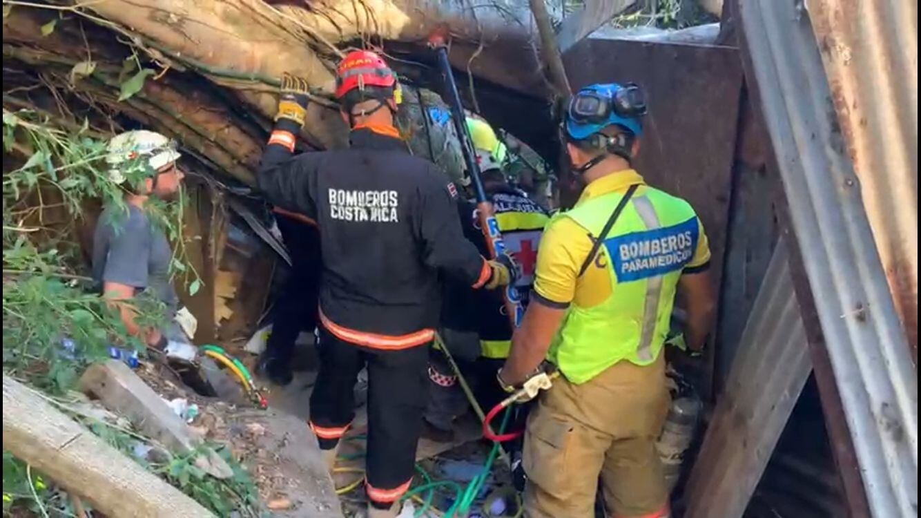 En el sitio la Cruz Roja y los Bomberos tuvieron que usar equipo especial para asegurar el árbol y evitar otra emergencia mayor.