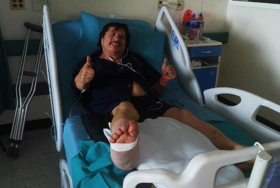 Al humorista lo operaron este martes 9 de junio del tobillo derecho. Los médicos corrigieron el daño que sufrió en un grave accidente de tránsito ocurrido el domingo 17 de mayo en Atenas, Alajuela.