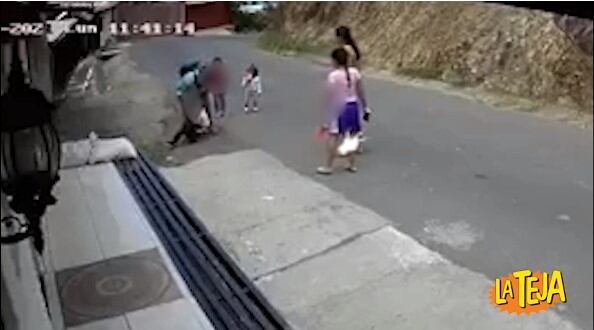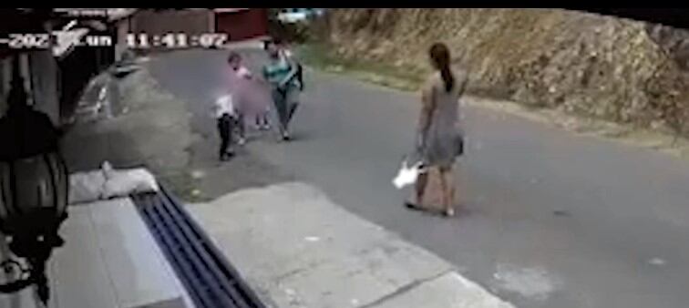 En el video se observa cuando dos mujeres caminan con unos niños y uno de esos pequeños, vestido con uniforme de escuela, va caminando y se topa con la mujer que aparentemente es su madre.