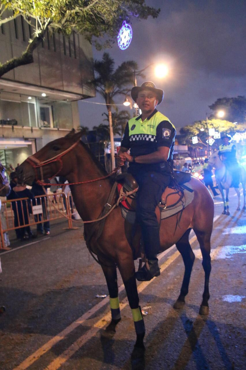 Este policía municipal tiene 24 años de servicio y desde hace ocho años es uno de los colaboradores del tope. Siempre se le verá al principio de la actividad revisando que ningún jinete se meta a la brava y al final procurando que el desfile no se pegue.