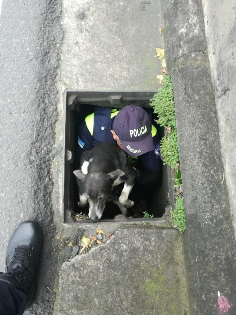 "Me metí y la alcantarilla me tapaba, una vez dentro le hice cariño para calmarlo y se lo entregué a mi compañero, ya luego él me dio la mano para salir de ahí. La verdad fue una salvada que nos avisaran que el perro estaba en apuros”, dijo muy contento.