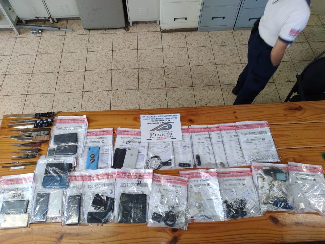 Además de los teléfonos, los policías encontraron 20 cables USB, 15 adaptadores para cargadores (cabezas), dos baterías para celular, 13 manos libres, una espiga USB y 12 chips telefónicos. También encontraron 13 envoltorios de diferentes tamaños con aparente marihuana.