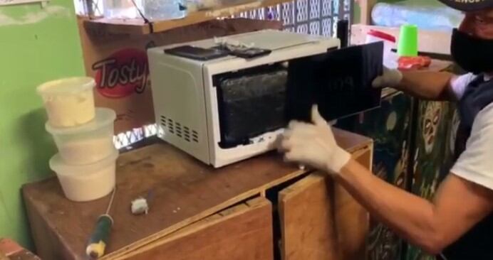 El Ministerio de Justicia informó este viernes 26 de junio que en la puerta de un microondas encontraron varios aparatos durante una requisa que realizaron el jueves.
