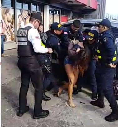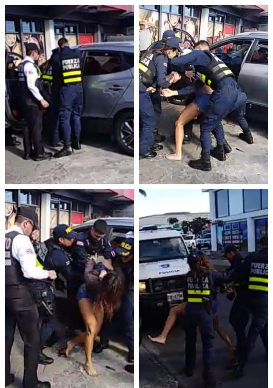 La modelo Andreina Samudio no solo forcejeó con los cinco policías que la bajaron a la fuerza de su carro, sino que también se puso espesa cuando otro oficial le quiso hacer la prueba de alcoholemia, para ver si andaba tapis.