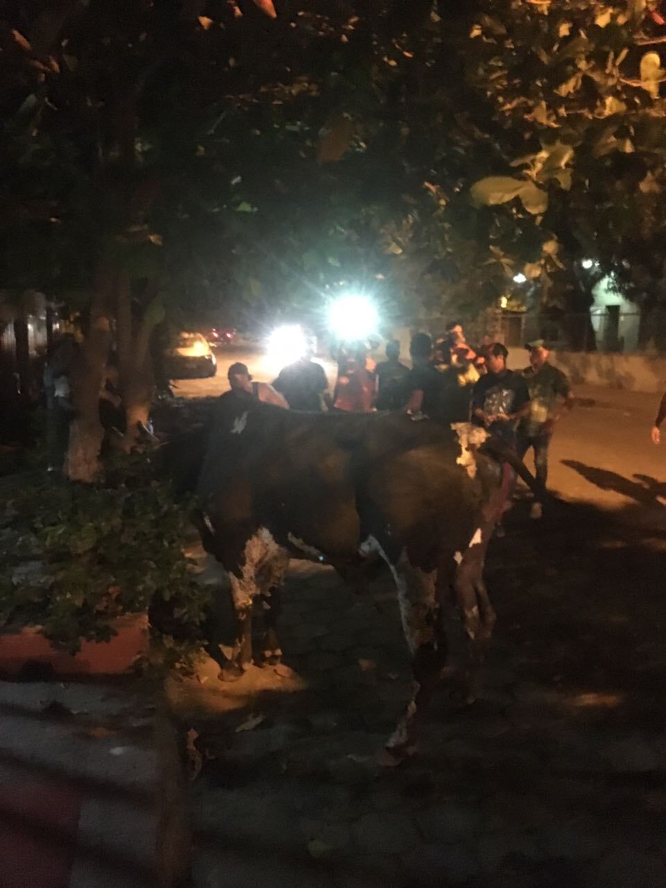El paseo del torito acabó frente de la Escuela El Carmen, los lazadores lo amarraron a un árbol hasta que llegó el camión y se lo llevó.