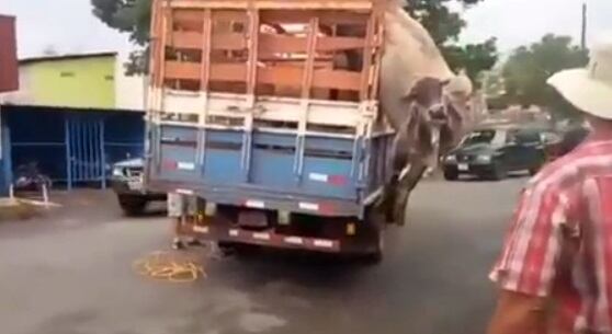 Incluso todo el mundo pensó que la vaca iba a volcar el camión, pues se movía desesperada para tratar de zafarse, pero no había manera, hubo quienes le gritaban al dueño que cortara las barandas del camión para salvarla. ¡Aquello era un alboroto!