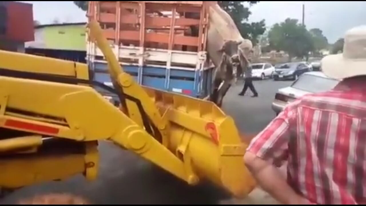 Cuando estaban listos para montar a la vaca en la pala del backhoe, el chunchón se apagó y fue una verdadera pulseada para volverlo a encender, pero cuando lo lograron encender ya la vaca estaba muerta.