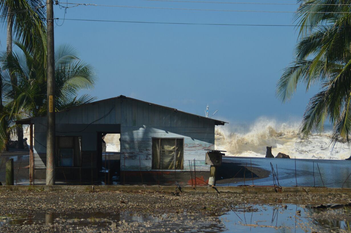 El fuerte oleaje que afecta las playas del Pacífico, desde el domingo al mediodía, tiene en congojas a los vecinos de Caldera, en especial a los que viven al frente del rompeolas.