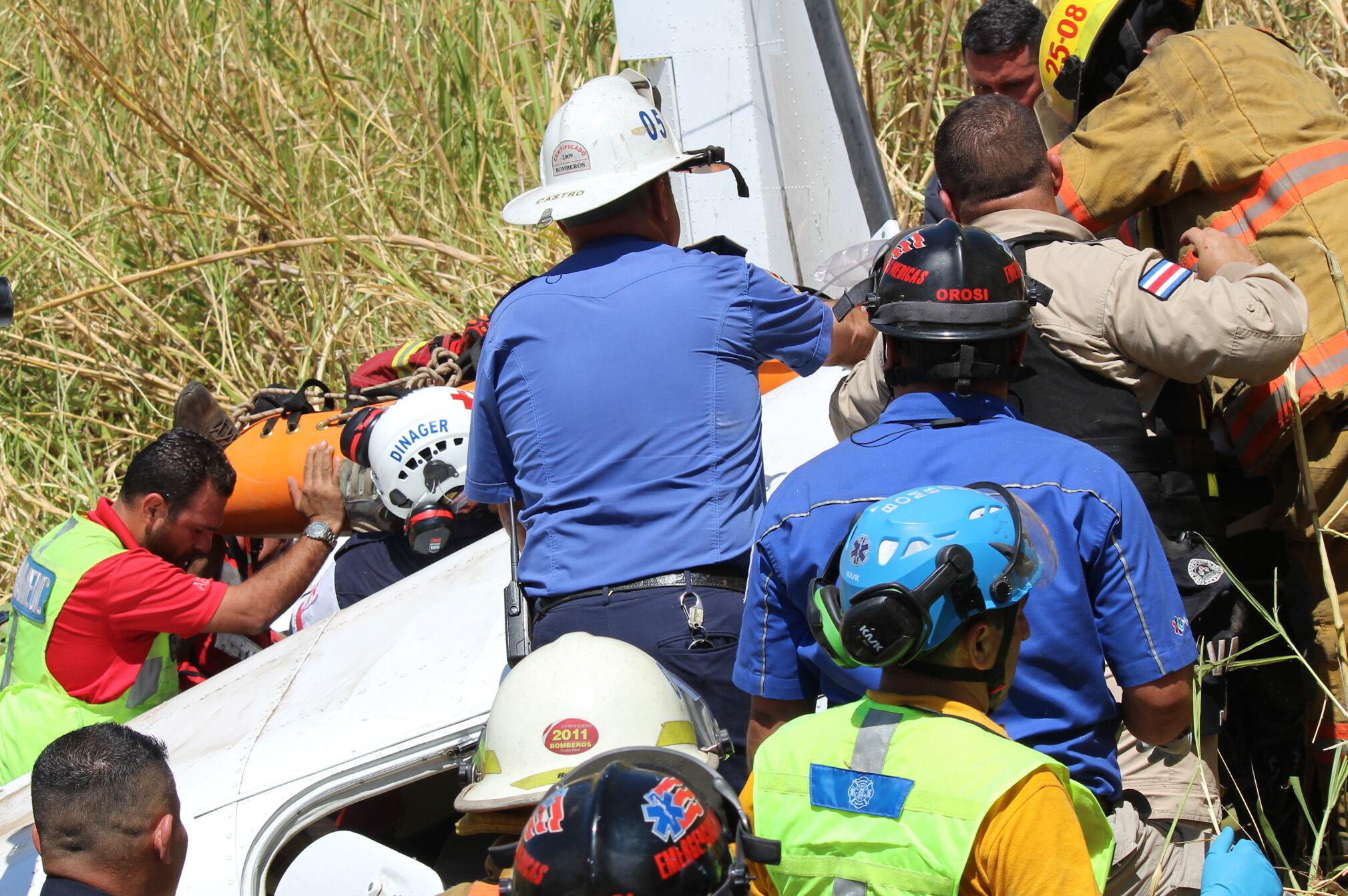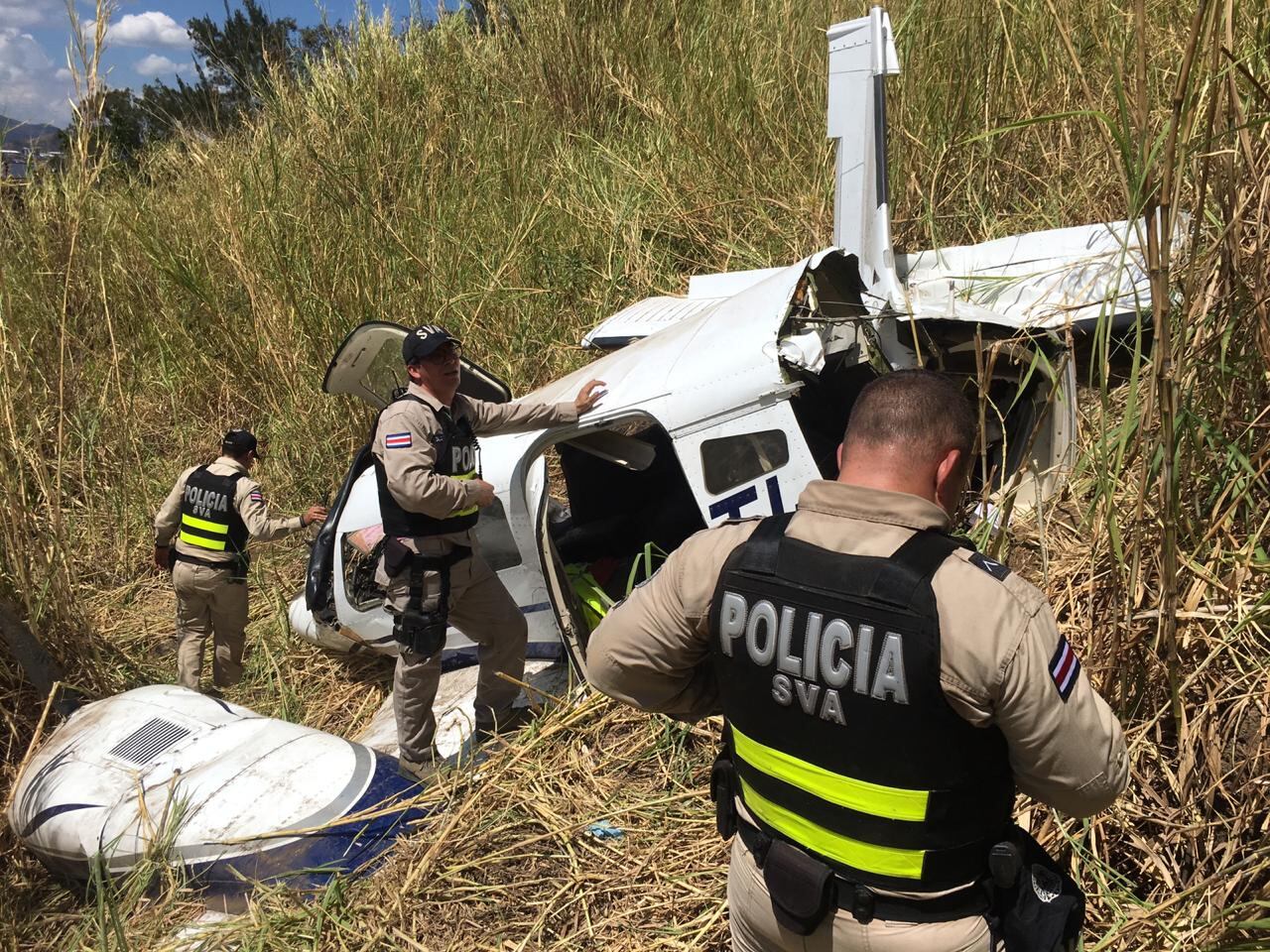 Ronny Latouche, jefe de operaciones de Bomberos, explicó que cuando llegaron los dos ocupantes de la avioneta estaban dentro de la cabina, ambos conscientes.