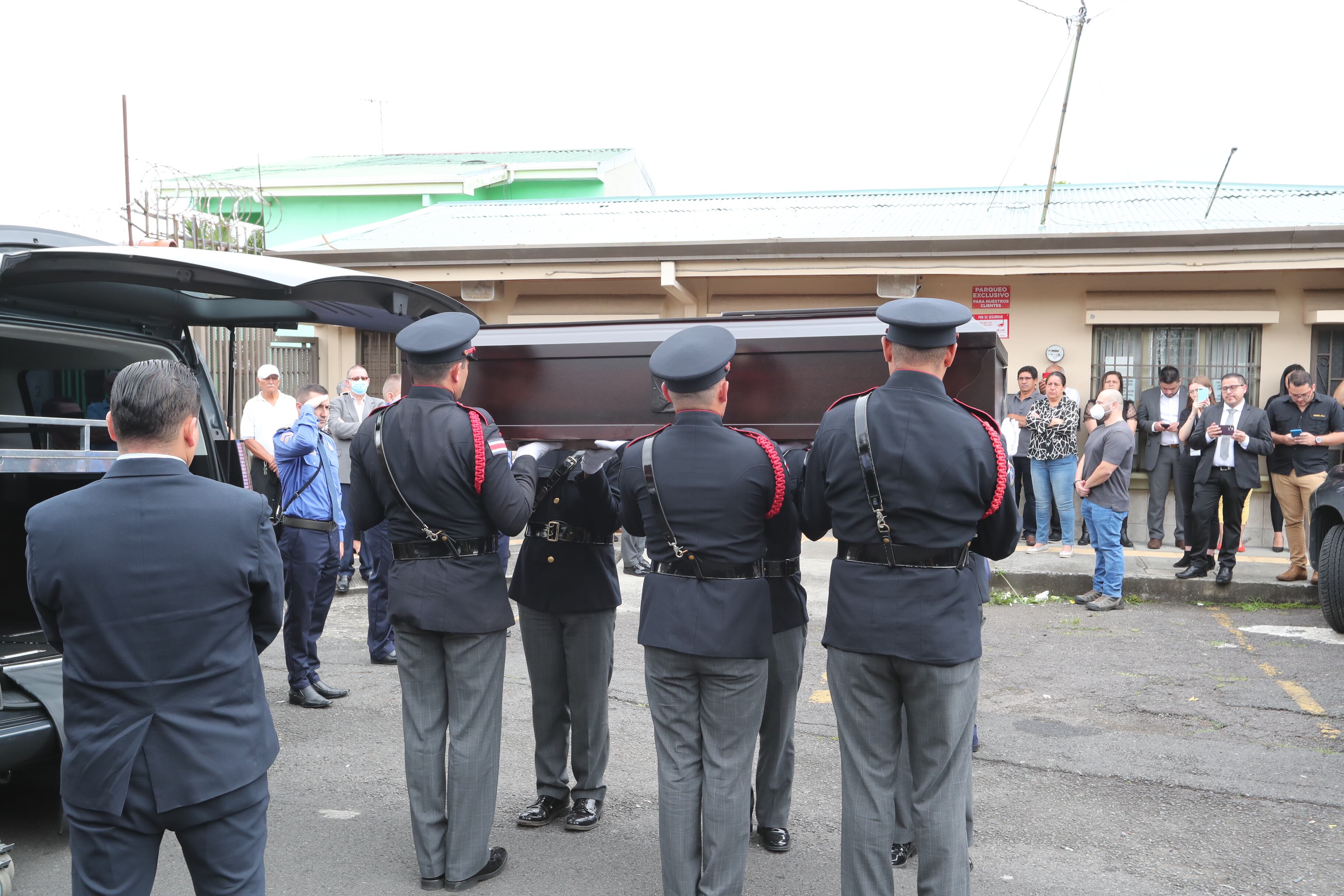 Una vez finalizada la capilla ardiente, el ataúd de don Walter fue cargado en hombros por una guardia de honor que lo llevó hasta el vehículo de la funeraria que lo trasladó hasta la capilla de velación, en San Rafael de Heredia.
