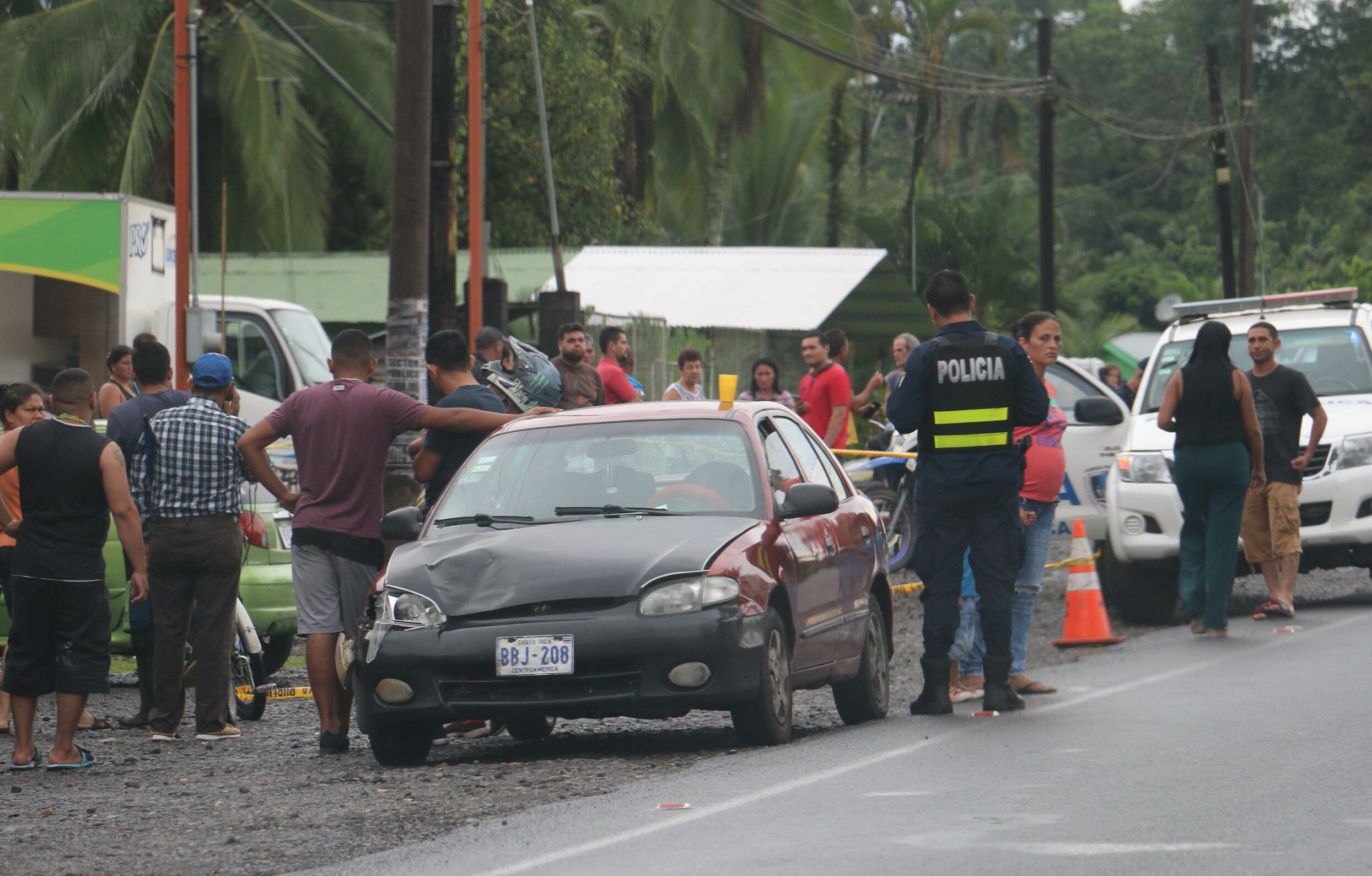 Este lamentable hecho ocurrió este jueves pasadas las 3 de la tarde frente al súper El Uno, en San Luis de Guácimo. Este local está junto a la calle principal que lleva hacia Río Jiménez.