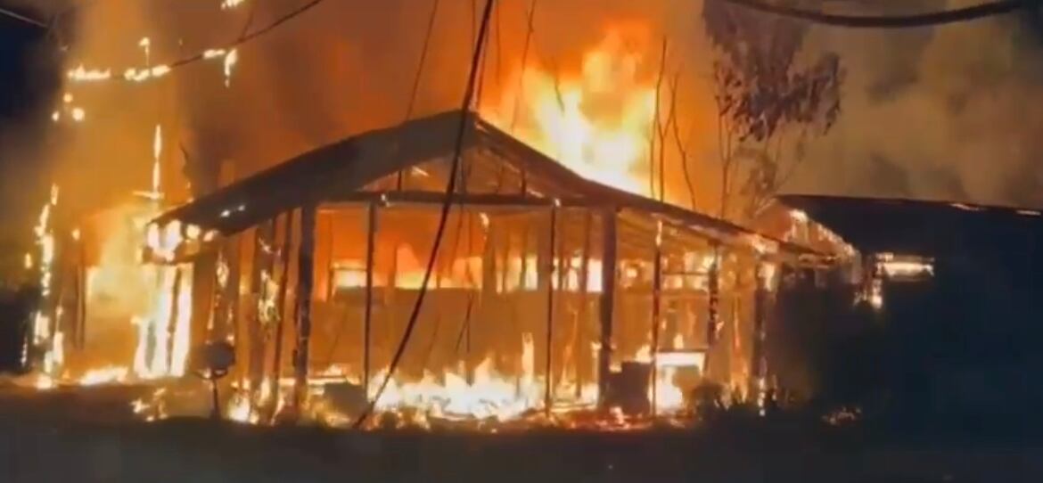 El incendio ocurrió a las 9:33 de la noche frente a la plaza de Deportes de la localidad. En total, tres casas se quemaron, todas propiedad de una misma familia.